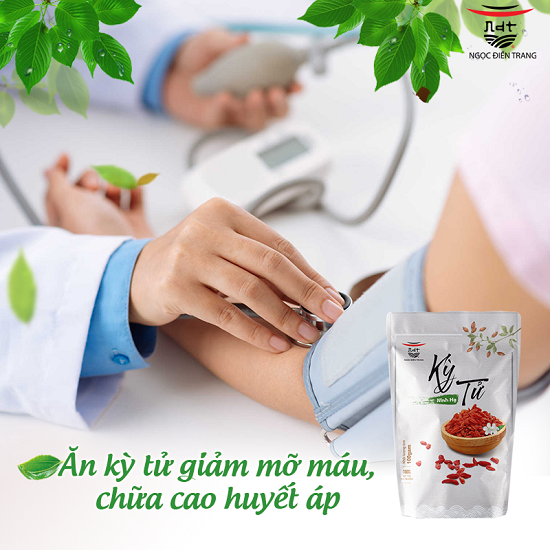 Ăn kỳ tử có thể giúp giảm hàm lượng cholesterol huyết thanh và triglyceride một cách rõ rệt, giảm nghẹ và ngăn ngừa xơ vữa động mạch, là sản phẩm dưỡng sinh bảo vệ sức khỏe rất tốt cho người bị cao huyết áp, bệnh tim mạch vành.
